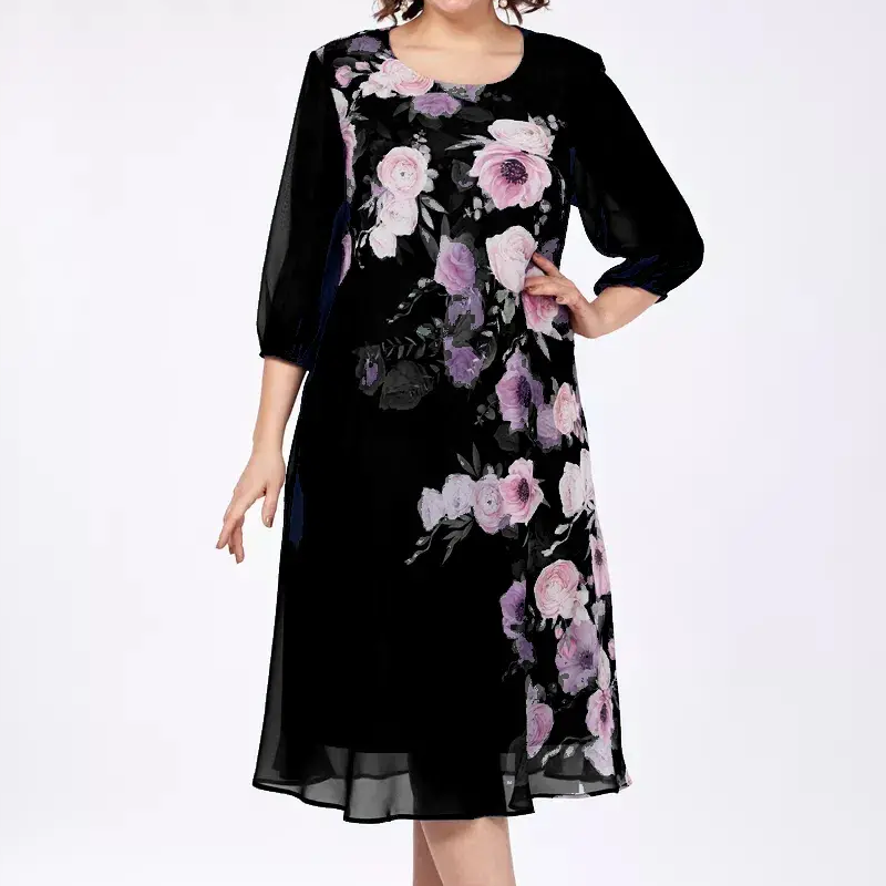 Pakiet zawiera 1 * Elegancka sukienka damska z okrągłym dekoltem w kwiaty