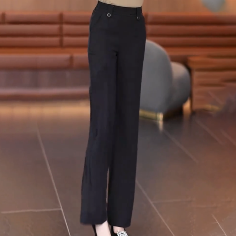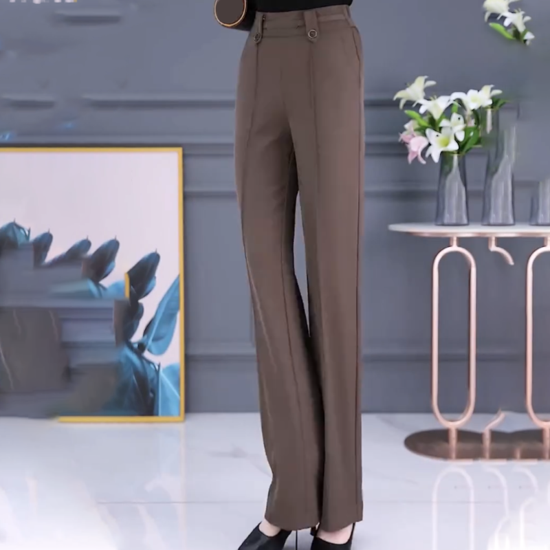 Zawartość: 1 para damskich spodni casualowych z prostą nogawką i wysokim stanem