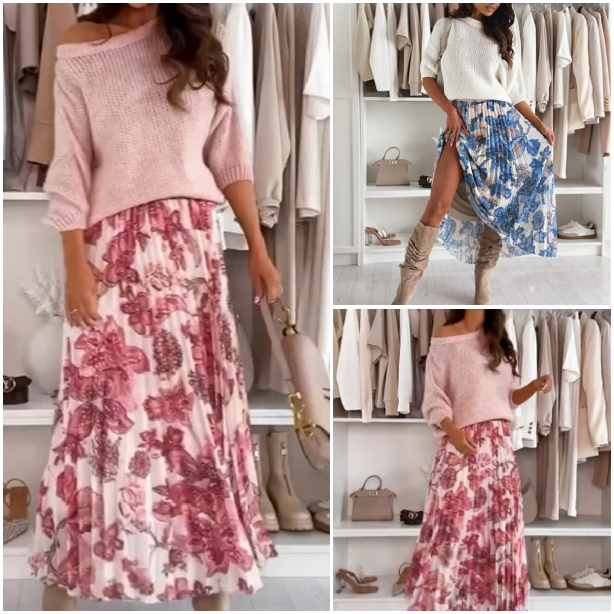 🔥👗Top z okrągłym dekoltem i spódnica w paski z nadrukiem