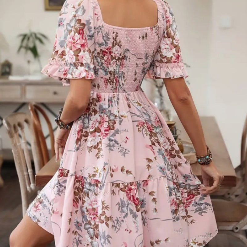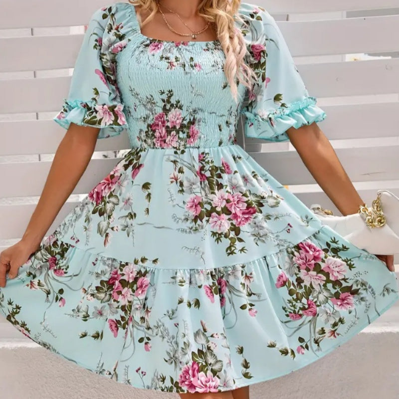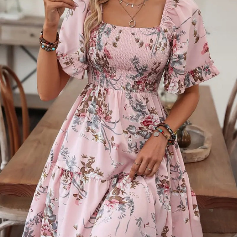 🔥👗Elegancka sukienka z kwadratowym dekoltem w kwiaty