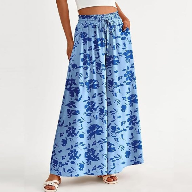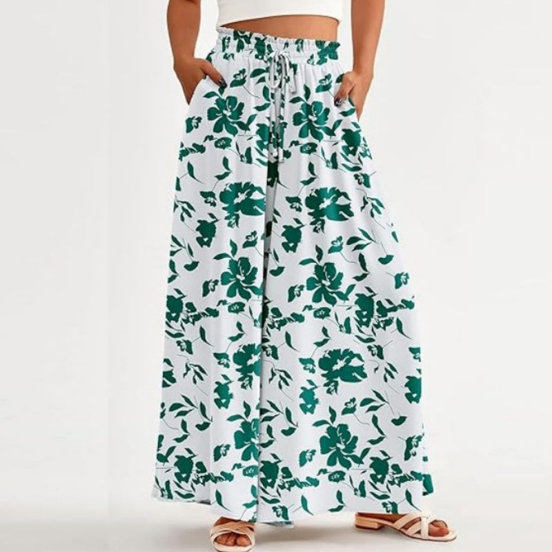 🔥👖Spodnie z szerokimi nogawkami w kwiaty z wysokim stanem