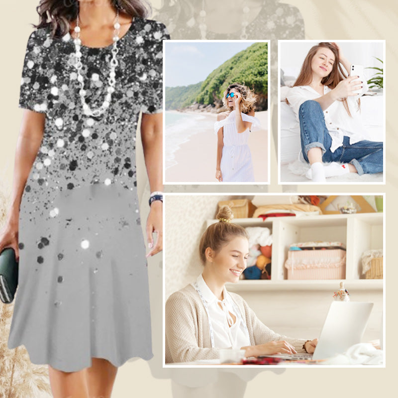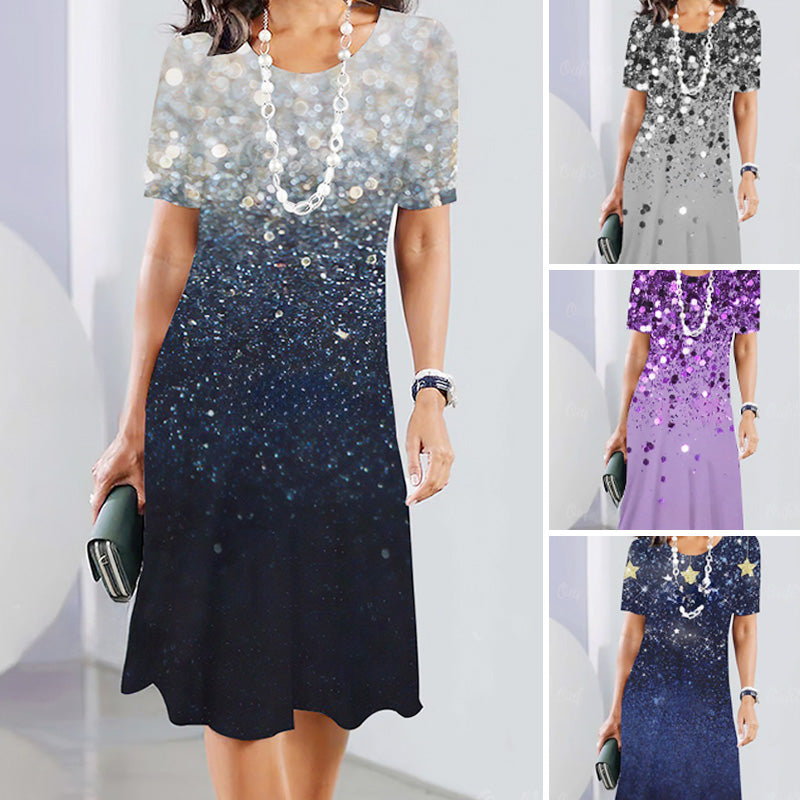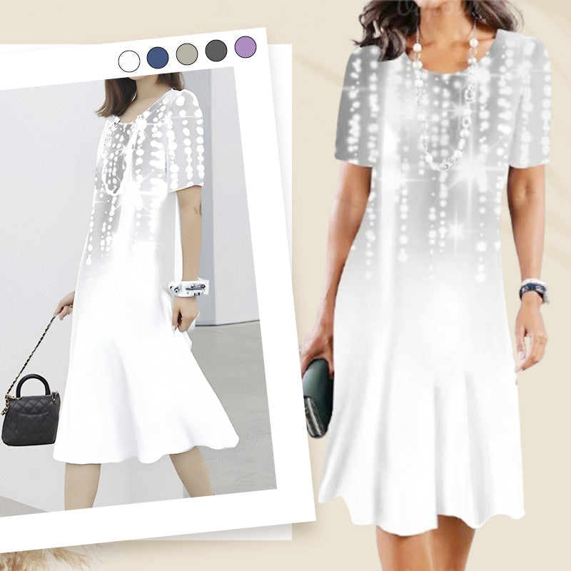 Zawartość opakowania: 1 * Eleganckie Sukienki Damskie z Krótkim Rękawem i Wzorem