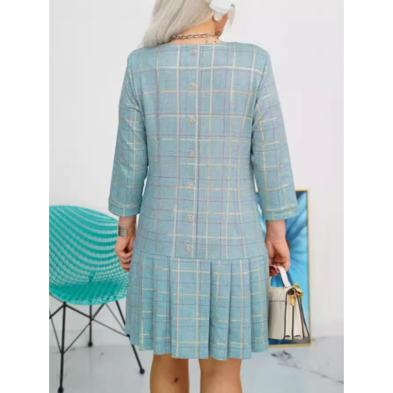 WZÓR W KRATKĘ – Klasyczny wzór z nowoczesnym akcentem: Subtelny wzór w kratkę dodaje faktury i wizualnego zainteresowania, nie przytłaczając przy tym odzieży. Ten ponadczasowy detal dodaje tej sukience odrobinę charakteru, czyniąc ją wszechstronnym elementem, który delikatnie się wyróżnia. Idealnie nadaje się na codzienną elegancję lub eleganckie okazje.