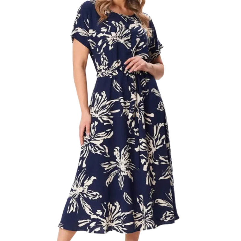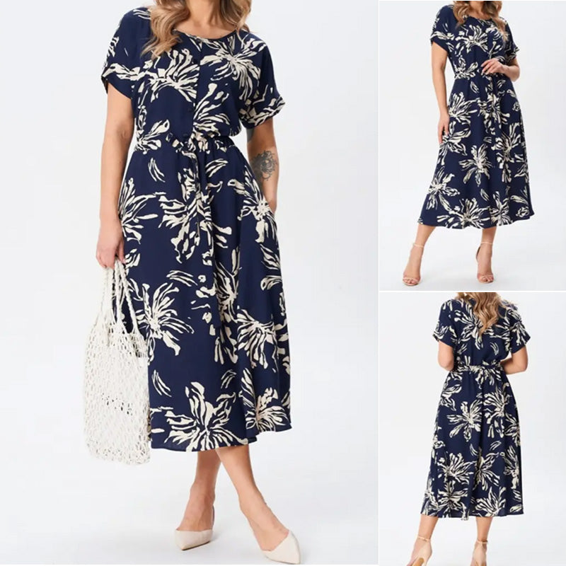 🔥👗Sukienka z okrągłym dekoltem i nadrukiem kwiatowym