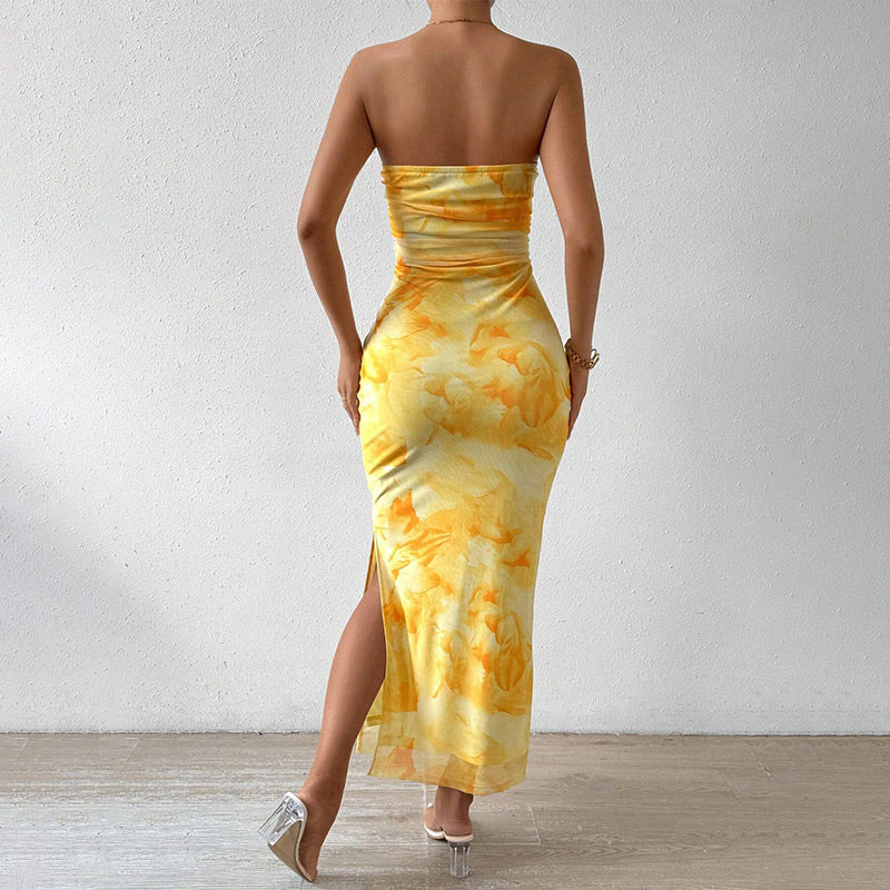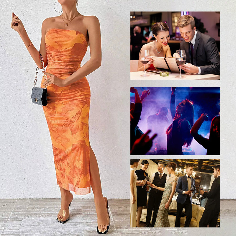 1 x Kwiatowa seksowna obcisła sukienka z rozcięciem i bez ramiączek
