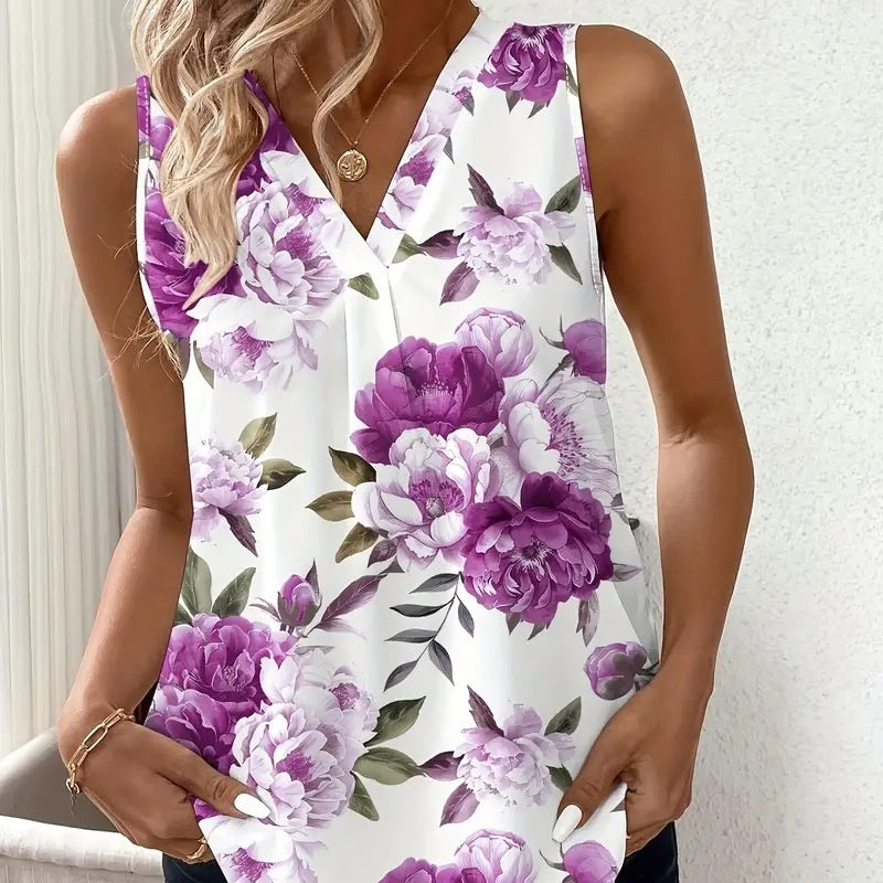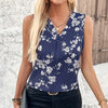 🔥👚Damska bluzka bez rękawów z dekoltem w serek i nadrukiem kwiatowym