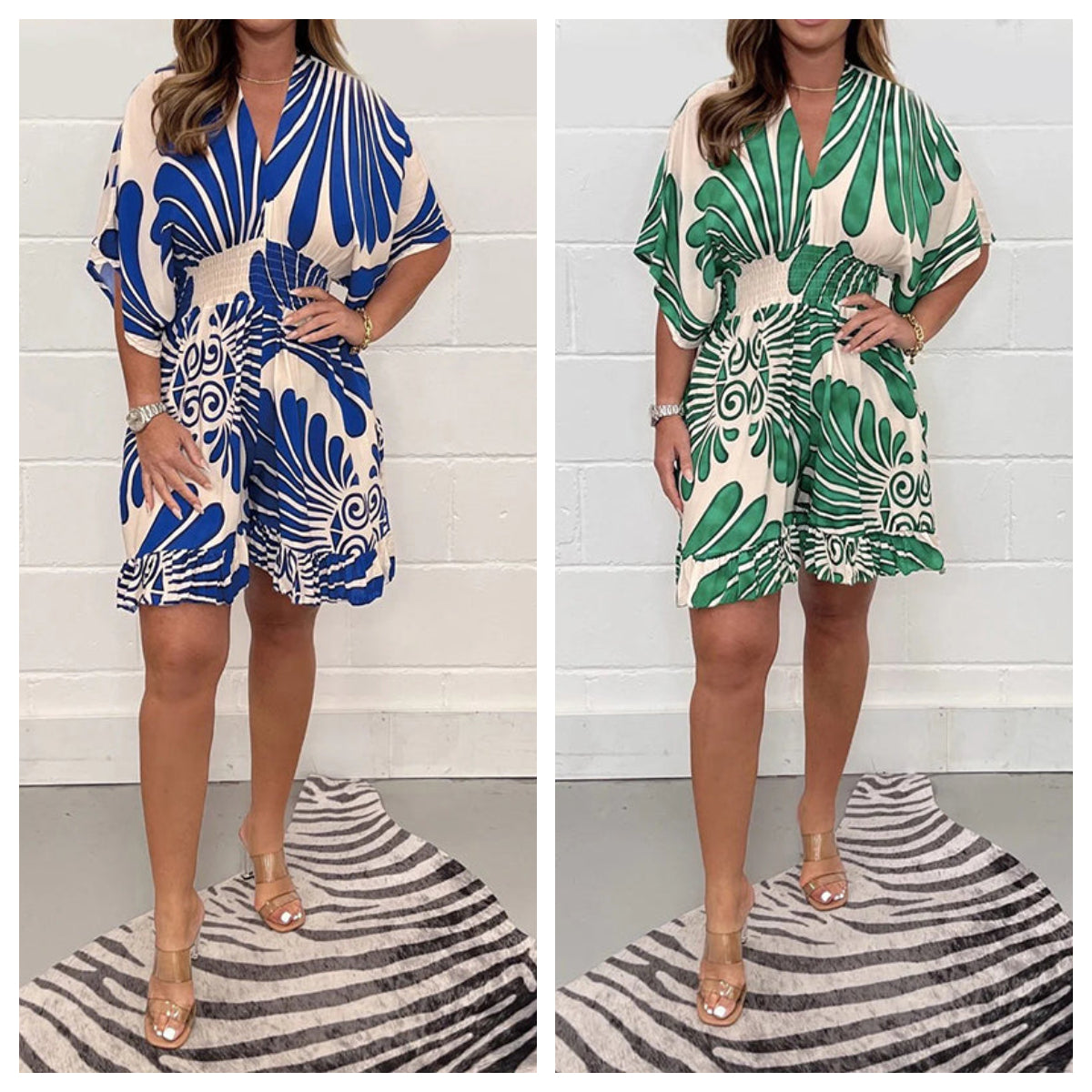 🔥🩱 Krótki kombinezon damski z nadrukiem roślinnym