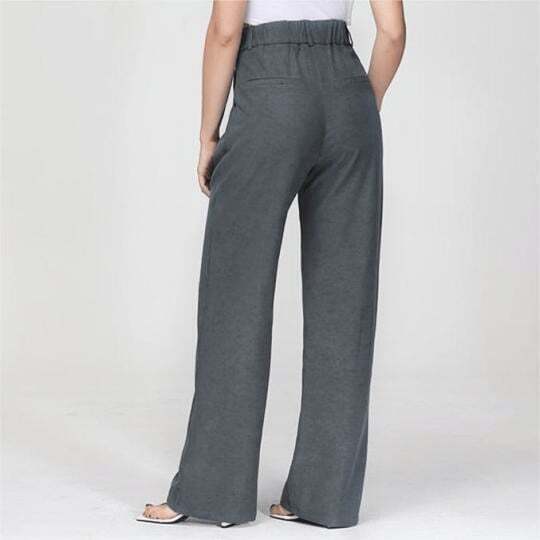 Są to dopasowane, ale luźne spodnie z szerokimi nogawkami z zakładkami nożowymi z przodu, łatwe do układania i długie, szerokie nogawki. Unikalny funkcjonalny pas spodni z szerokimi nogawkami zapewnia długotrwały komfort i dużo rozciągliwości, aby zapewnić całodzienny komfort.