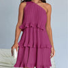 1 * Damska sukienka na jedno ramię z falbanami i warstwami w kształcie litery A