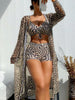 3-częściowy damski kostium kąpielowy – marszczony top bikini, szorty z wysokim stanem i prześwitujące nakrycie