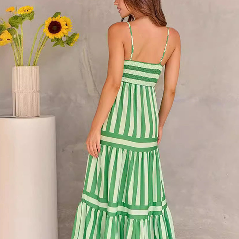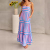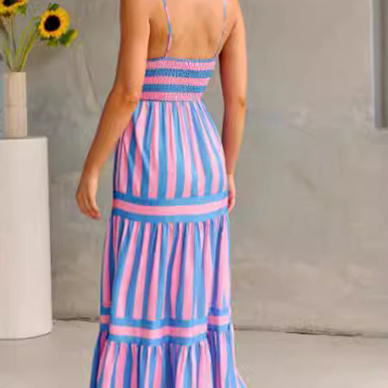 🔥👗Długa sukienka w paski z kolorowym blokiem i wąskimi ramiączkami