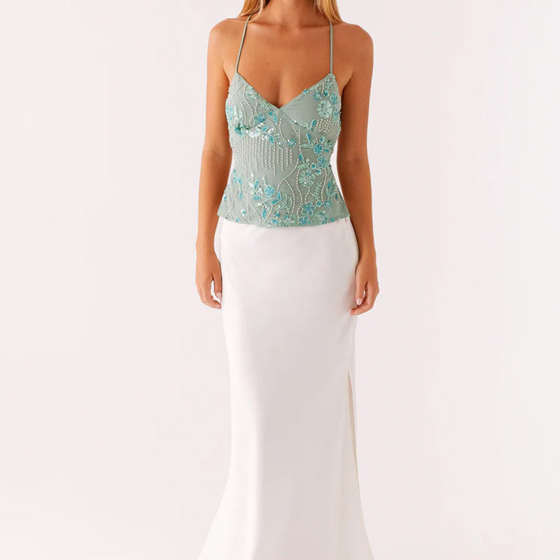 Zawartość opakowania: 1*Seksowna haftowana cekinowa krótka koszulka na ramiączkach