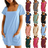 🔥👗Casualowa damska sukienka z krótkim rękawem z kieszeniami i kwadratowym dekoltem