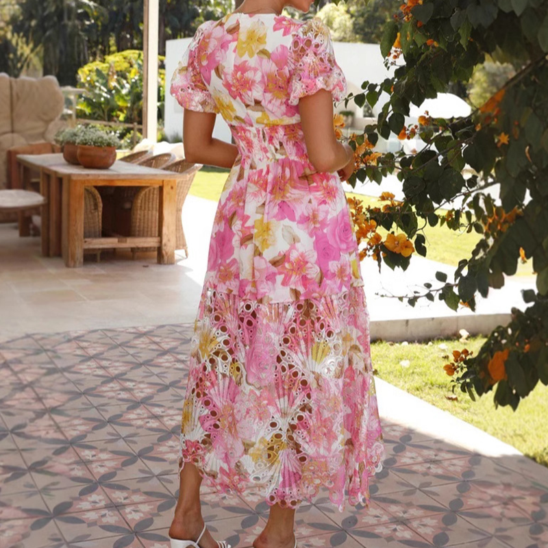 PŁYNNY HEMMING Z RUCHEM - Linia dołu tej sukienki jest lekka i przewiewna, kołysząc się z każdym krokiem. Oddychający materiał zapewnia chłód i wygodę w ciepłe dni, idealne na spacery, zakupy lub plażę.