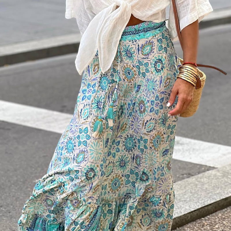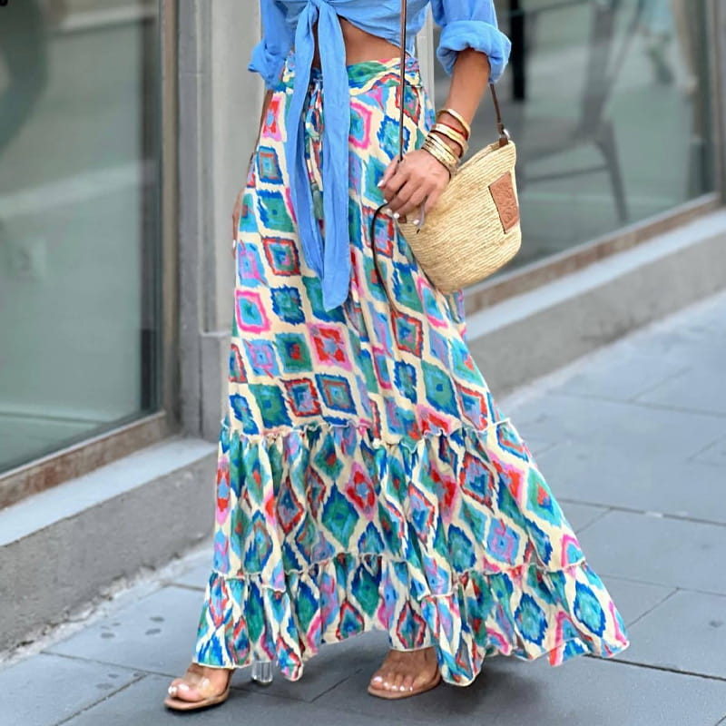 🔥👗Spódnica półdługa z nadrukiem w stylu wakacji letnich