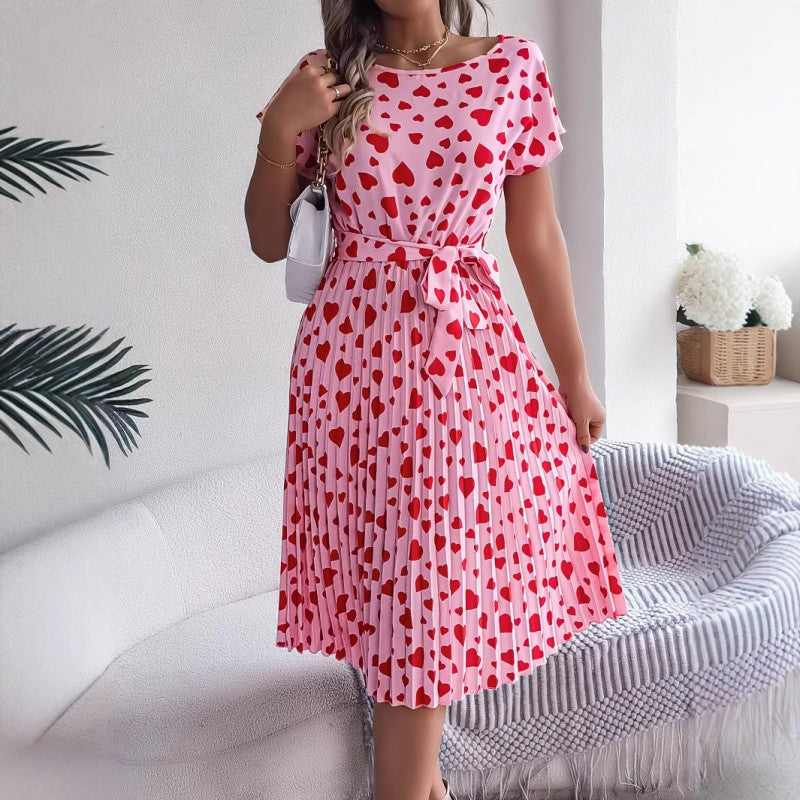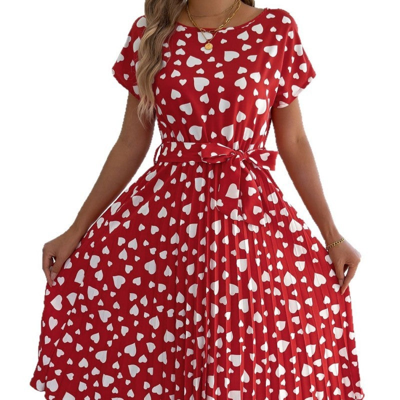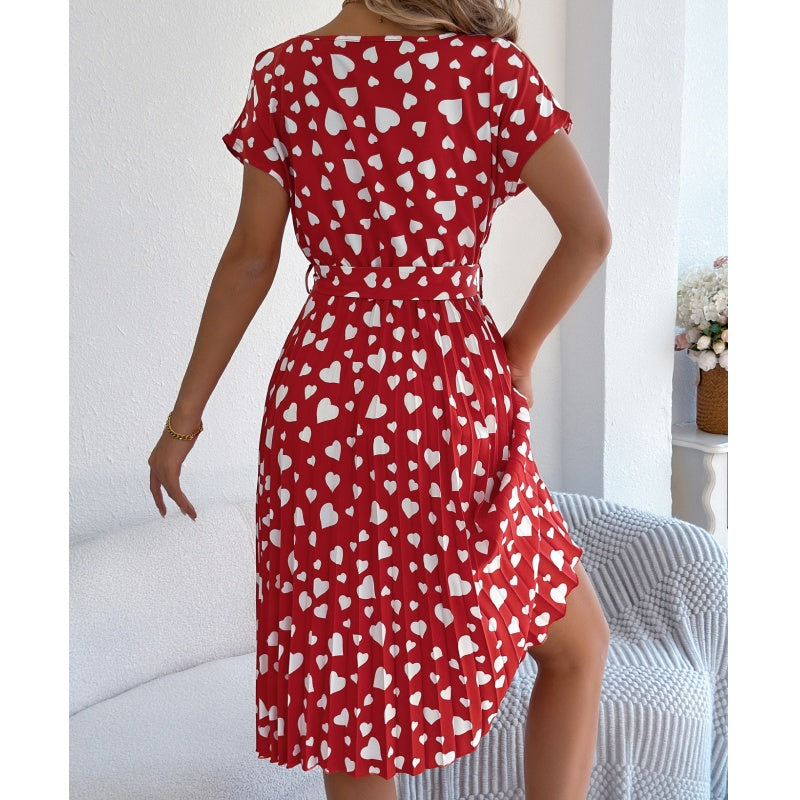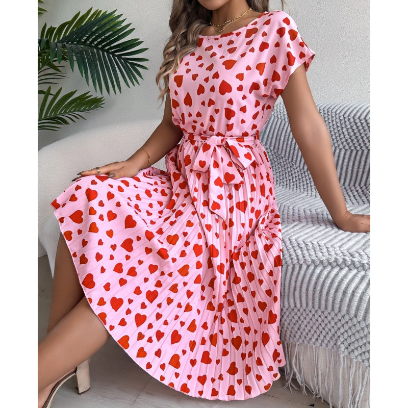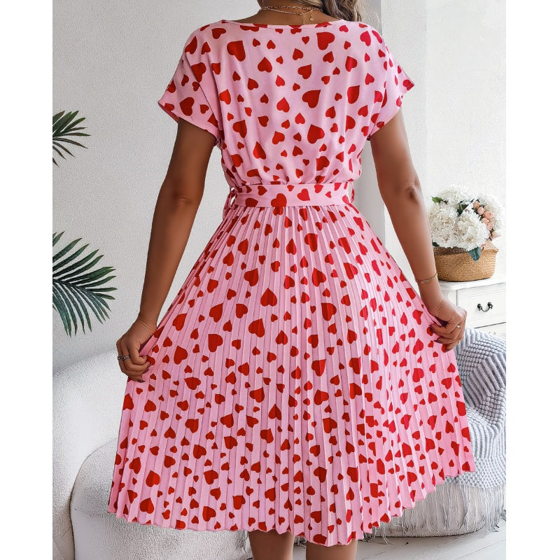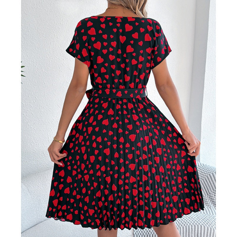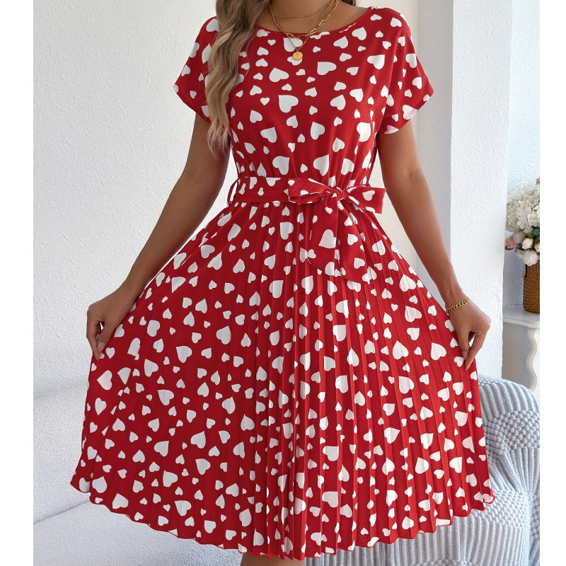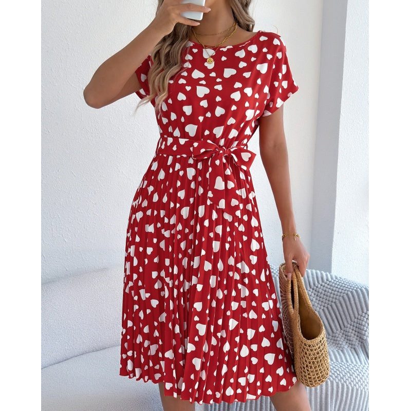 🔥👗 Sukienka z okrągłym dekoltem i krótkim rękawem w serduszko z pasującym paskiem