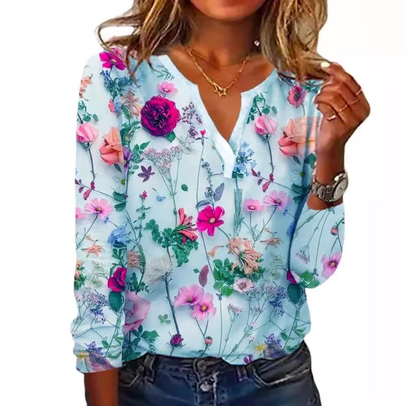 🔥👚Elegancka bluzka z długimi rękawami i kwiatowym nadrukiem