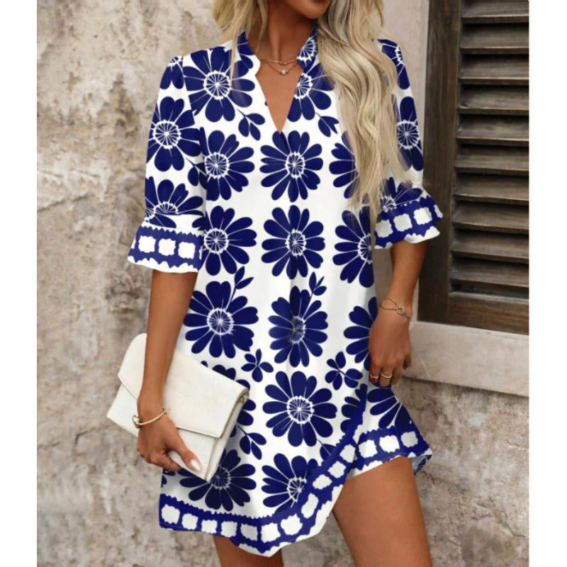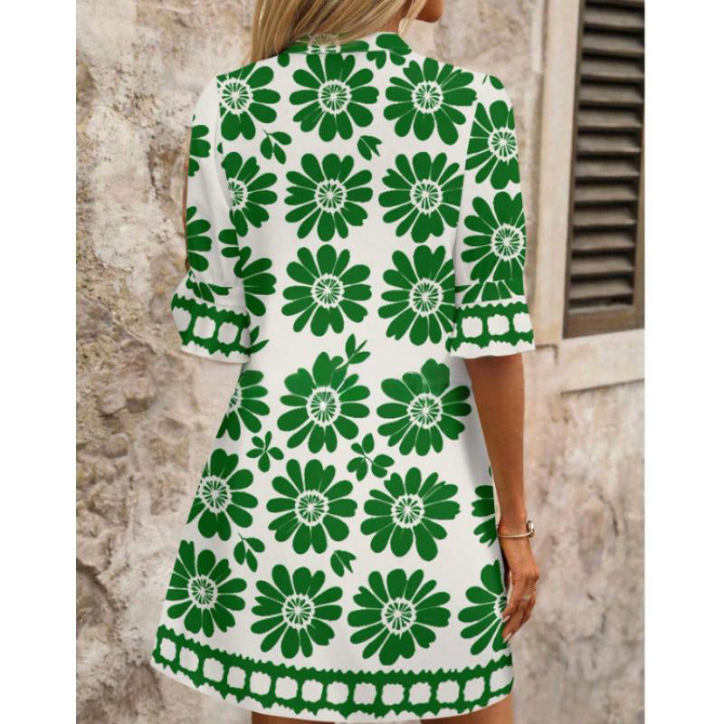 🔥👗Sukienka z dekoltem w serek i kwiatowym nadrukiem