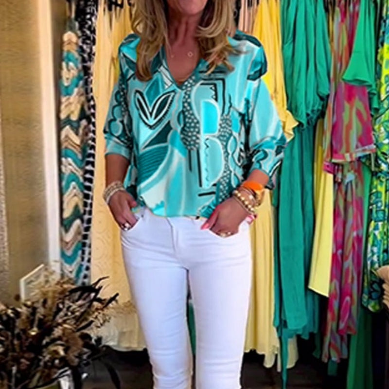 🔥👚 Elegancka koszula z nadrukiem w kształcie litery V