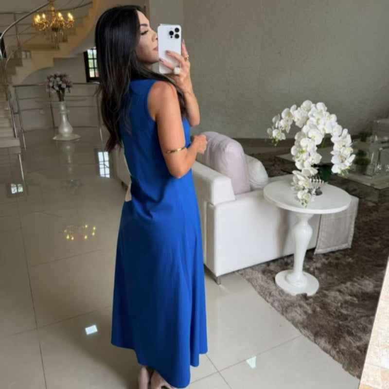 PROJEKT Z OKRĄGŁYM DEKOLTEM BEZ RĘKAWÓW- Klasyczny okrągły dekolt i bezrękawniki dodają modnego wyglądu i można je łatwo łączyć z dodatkami, kurtkami lub kardiganami, aby uzyskać uniwersalną stylizację na dzień i na wieczór.