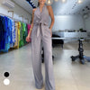 🔥👚👖Dwuczęściowy damski komplet składający się z topu bez rękawów i szerokich spodni z wysokim stanem