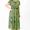 PŁASKA SPÓDNICA A - ta zielona sukienka ma dopasowaną spódnicę w kształcie litery A dla wszystkich typów sylwetki, która delikatnie podkreśla talię i wygodnie się układa, zapewniając kobiece dopasowanie.