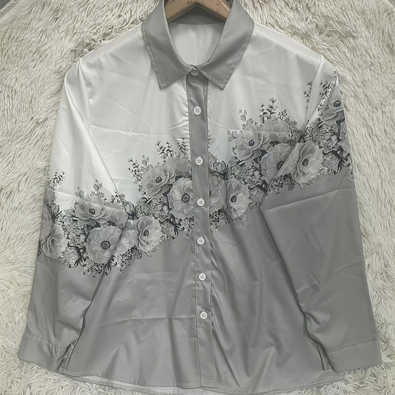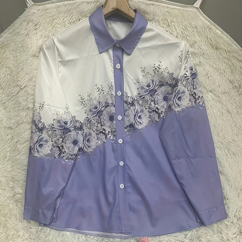 🔥👔Damska koszula z długim rękawem i kwiatowym nadrukiem