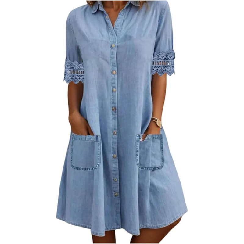 WYSOKIEJ JAKOŚCI DENIM - Wykonana z najwyższej jakości materiału denimowego, ta sukienka jest miękka, oddychająca i trwała. Materiał zapewnia pochlebne dopasowanie, zachowując jednocześnie swój kształt po wielokrotnym praniu.