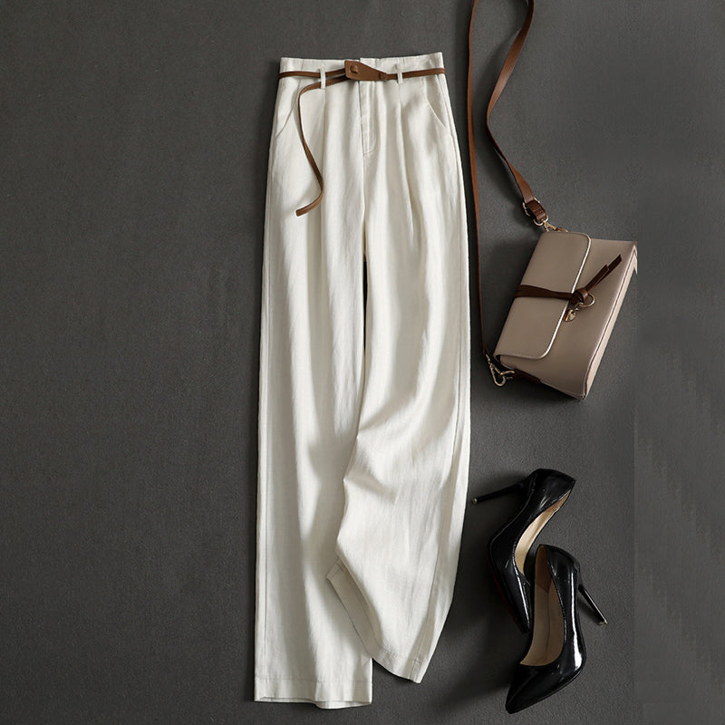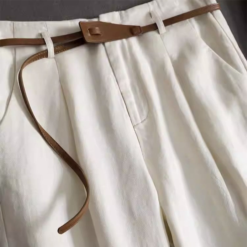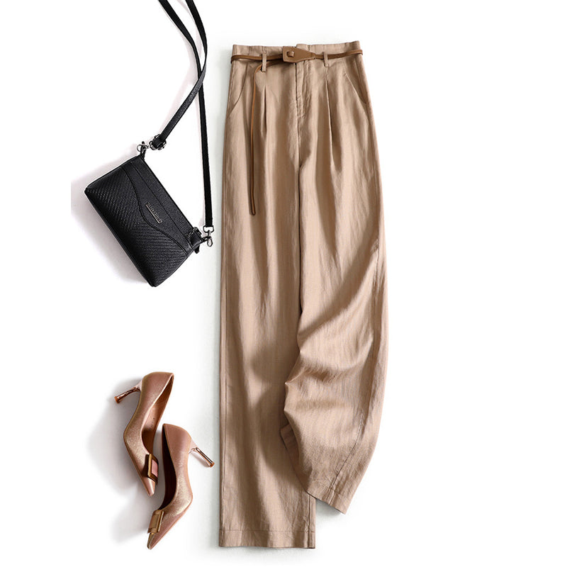 Zawartość opakowania: 1×damskie spodnie z szerokimi nogawkami z bawełny i lnu (w zestawie pasek)