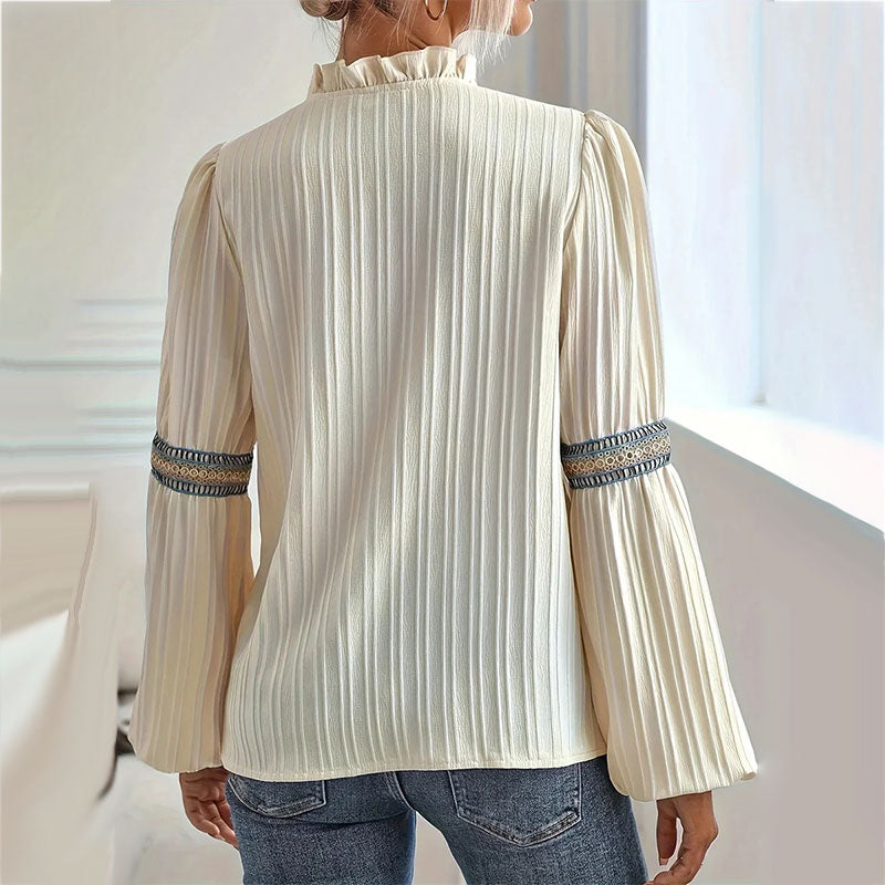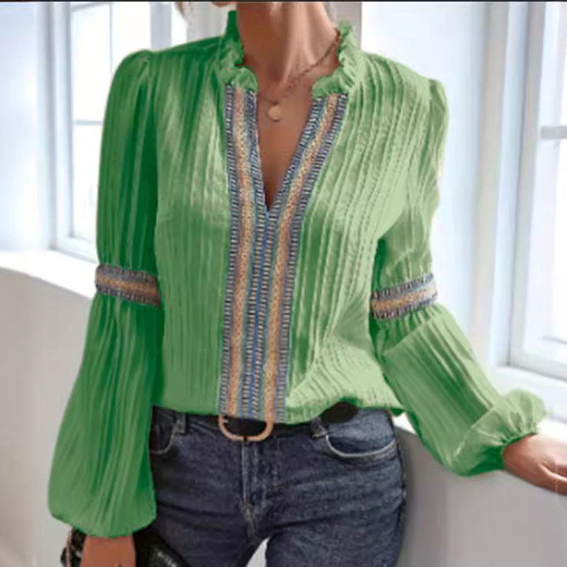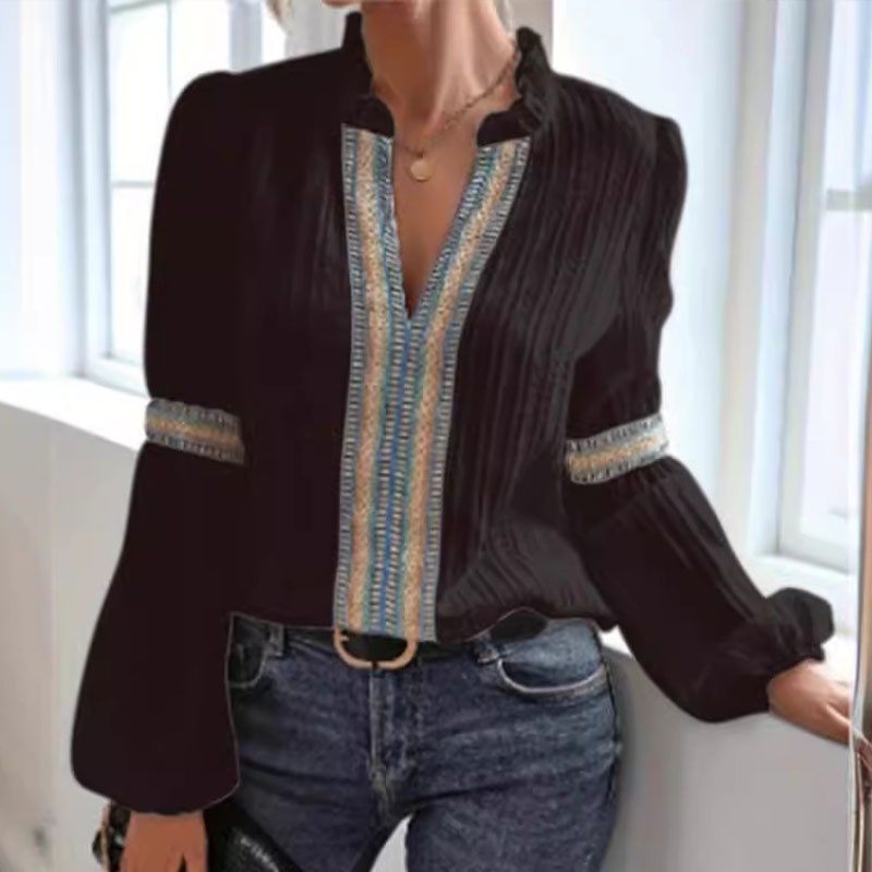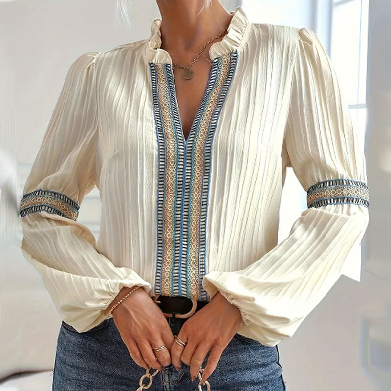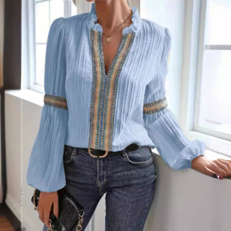 1×Koszula damska w stylu etnicznym z długim rękawem i dekoltem w serek