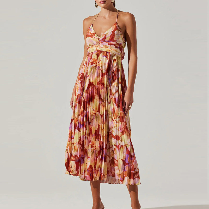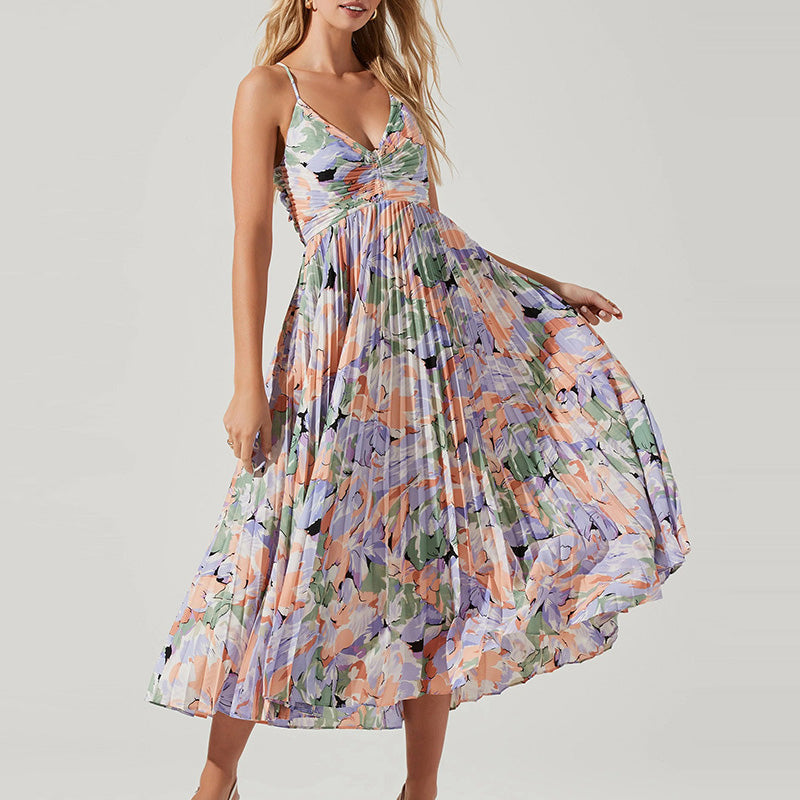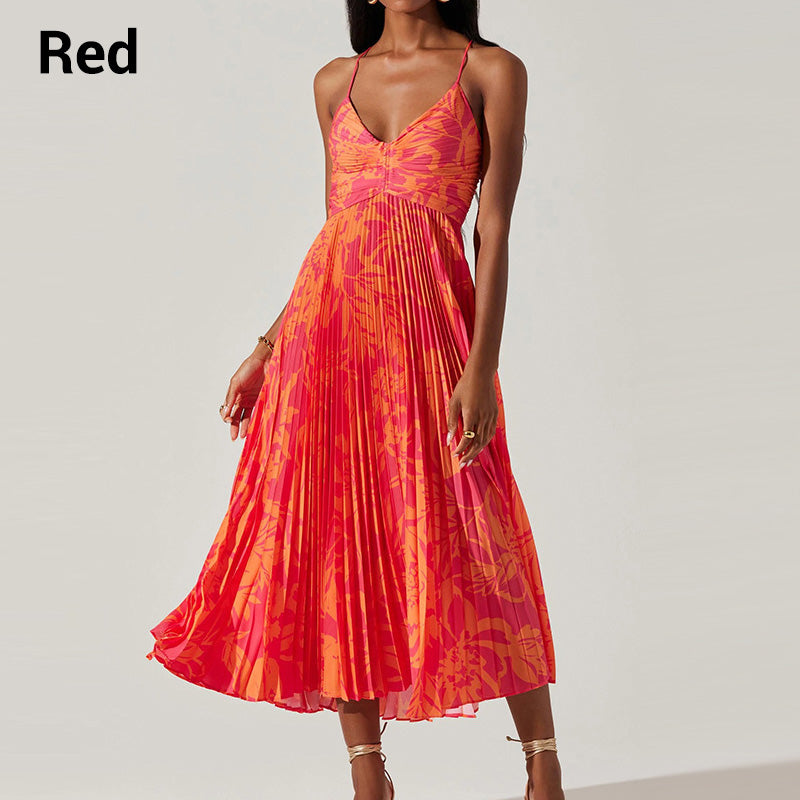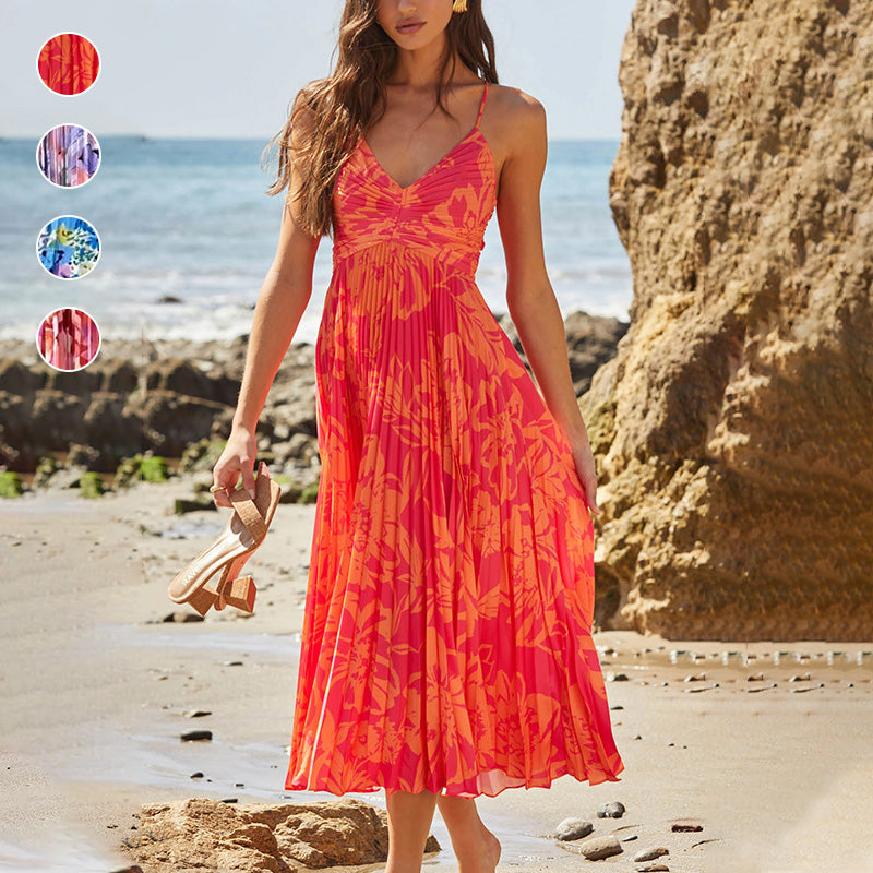 Zawartość opakowania: 1*Modne damskie sukienki bez rękawów z dekoltem w serek i nadrukiem