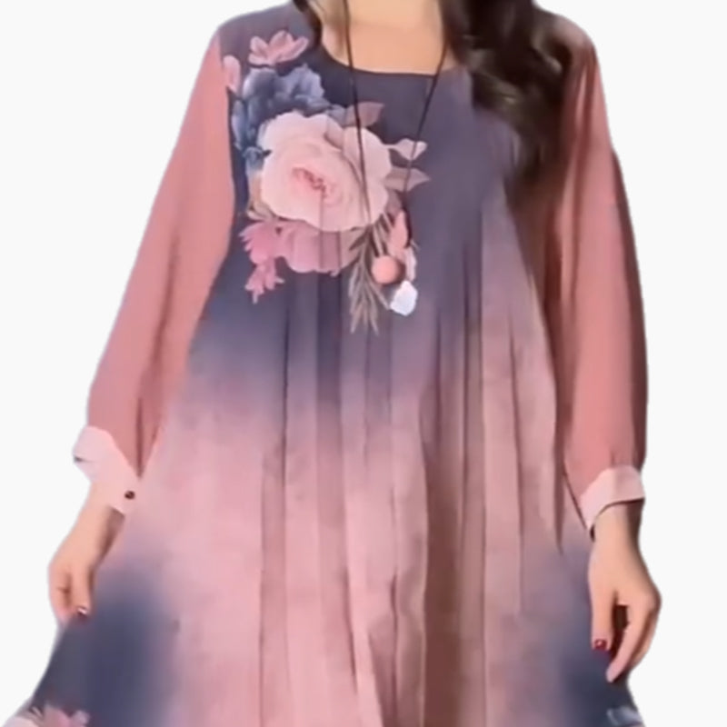 🔥👗Damska sukienka z okrągłym dekoltem i siateczkowymi rękawami w kwiatowy wzór