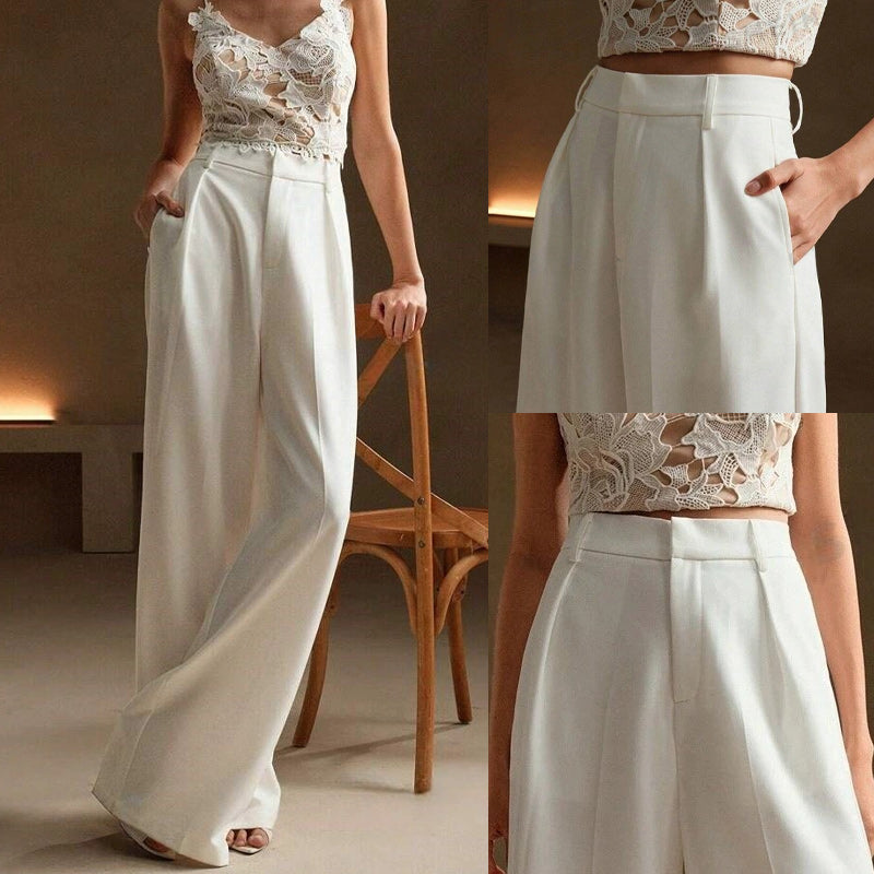 Zawartość opakowania: 1 *Damskie spodnie z wysokim stanem i szerokimi nogawkami i kieszeniami