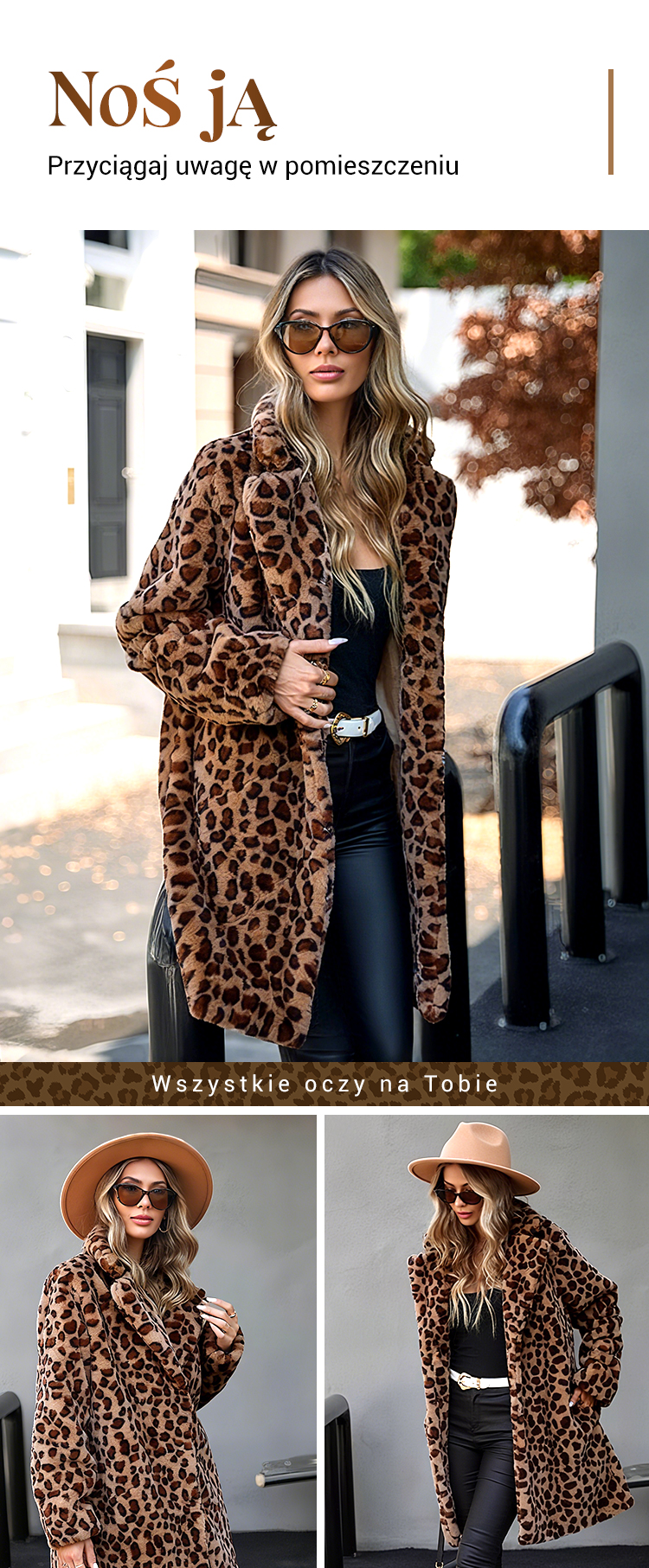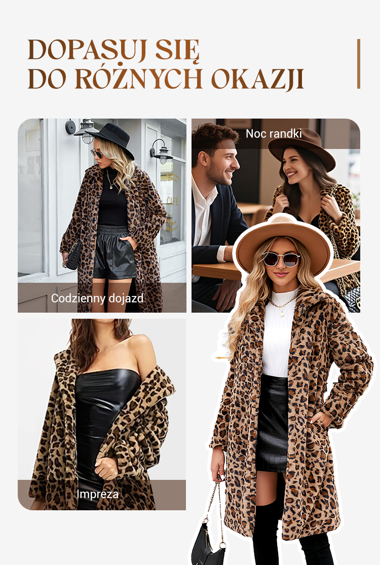 🔥🧥Damski ocieplany płaszcz w panterkę