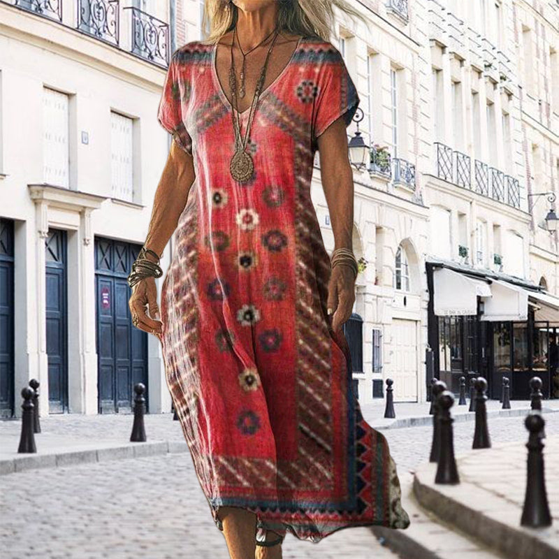 🔥👗Damska sukienka z krótkim rękawem i nadrukiem V-Neck