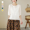 🔥👚Damska cienka, haftowana, oddychająca, bawełniana, lniana koszula z krótkim rękawem i okrągłym dekoltem