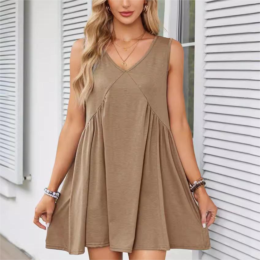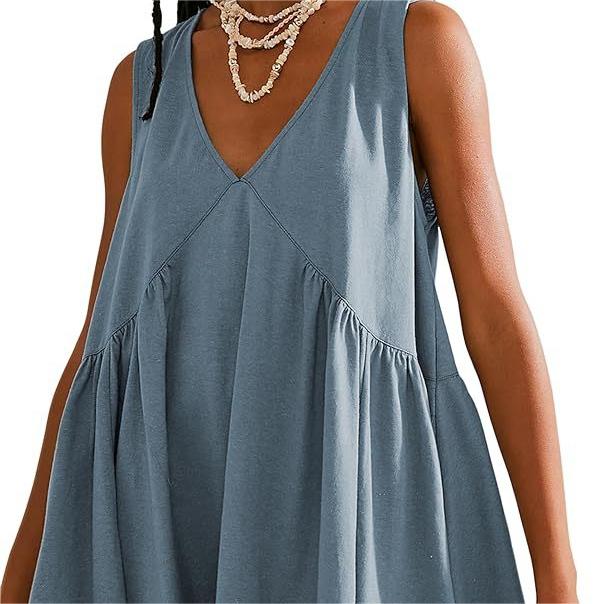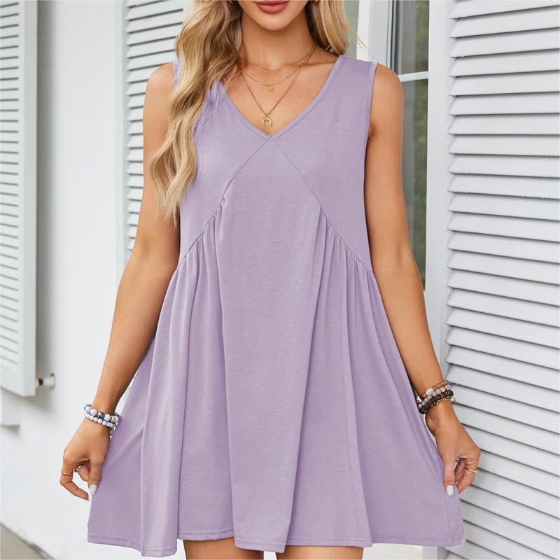 Typ: Damska luźna plisowana sukienka bez rękawów z dekoltem w serek