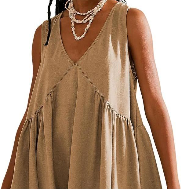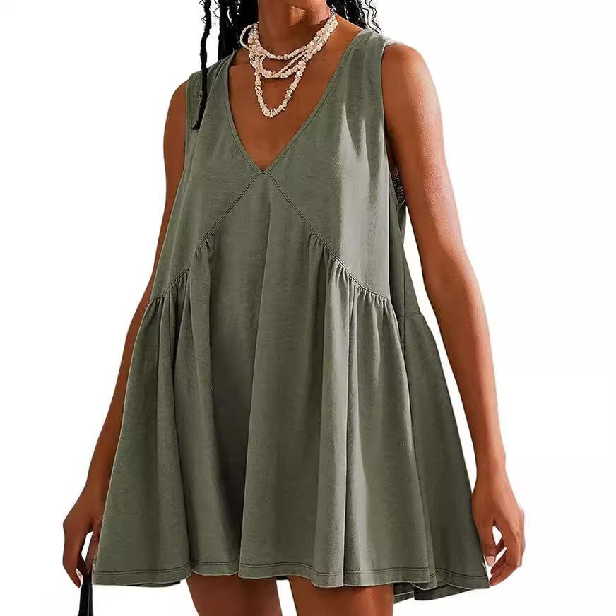 1* Damska luźna plisowana sukienka bez rękawów z dekoltem w kształcie litery V